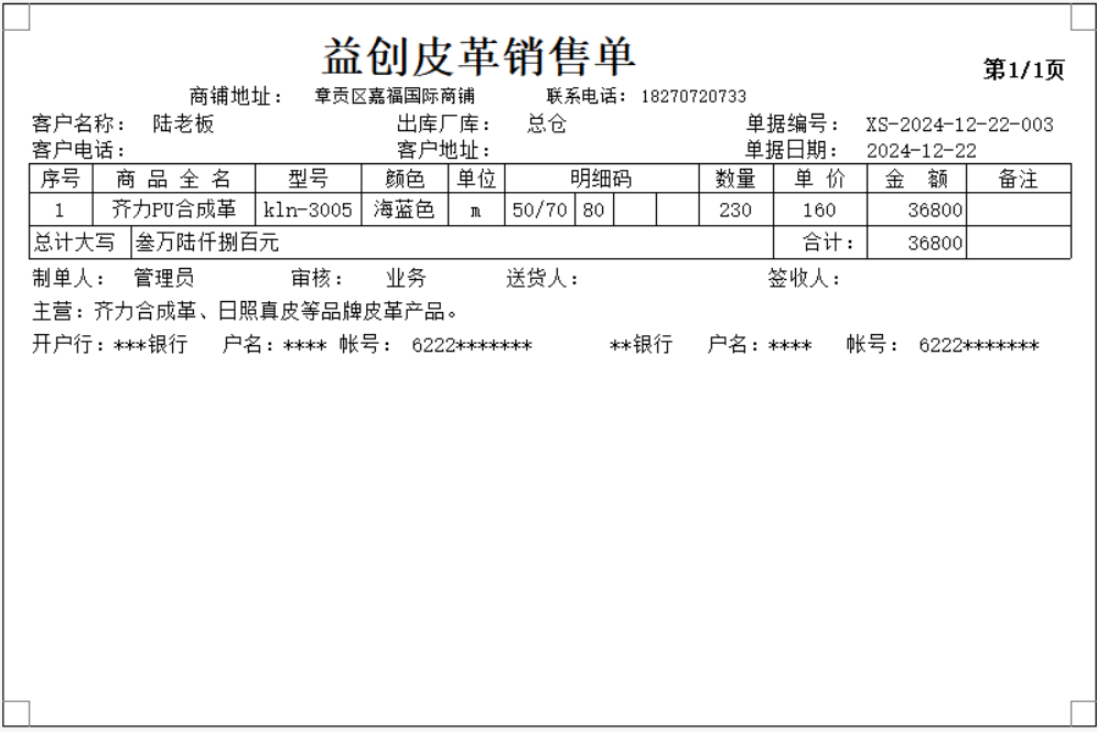 开单选择商品时可查看商品的账面库存,并且根据明细码进行分类统计,如只需部分长度,可自定义长度出库,并且进行减零处理,剩余长度依旧会留在库存中进行展示;