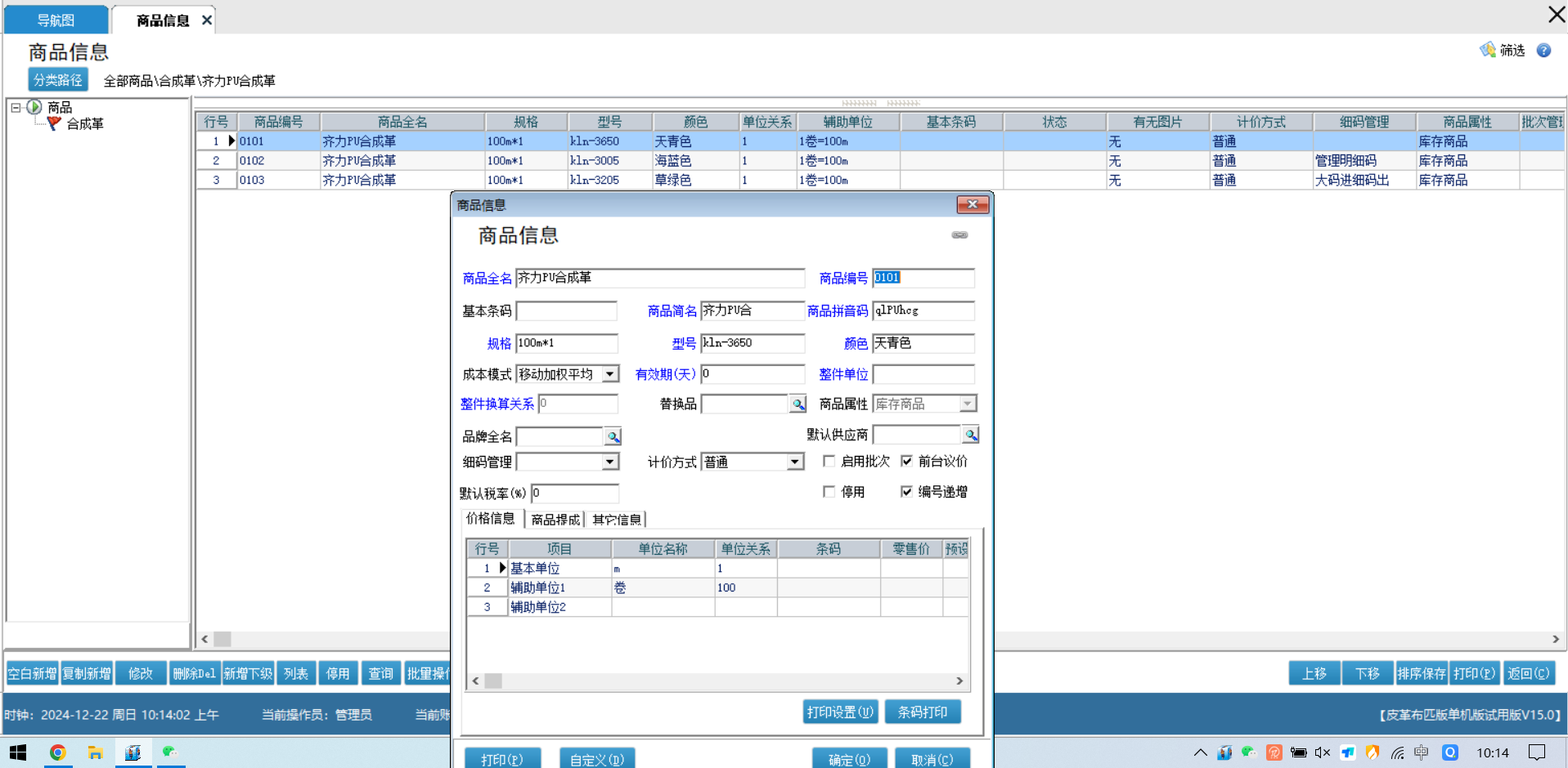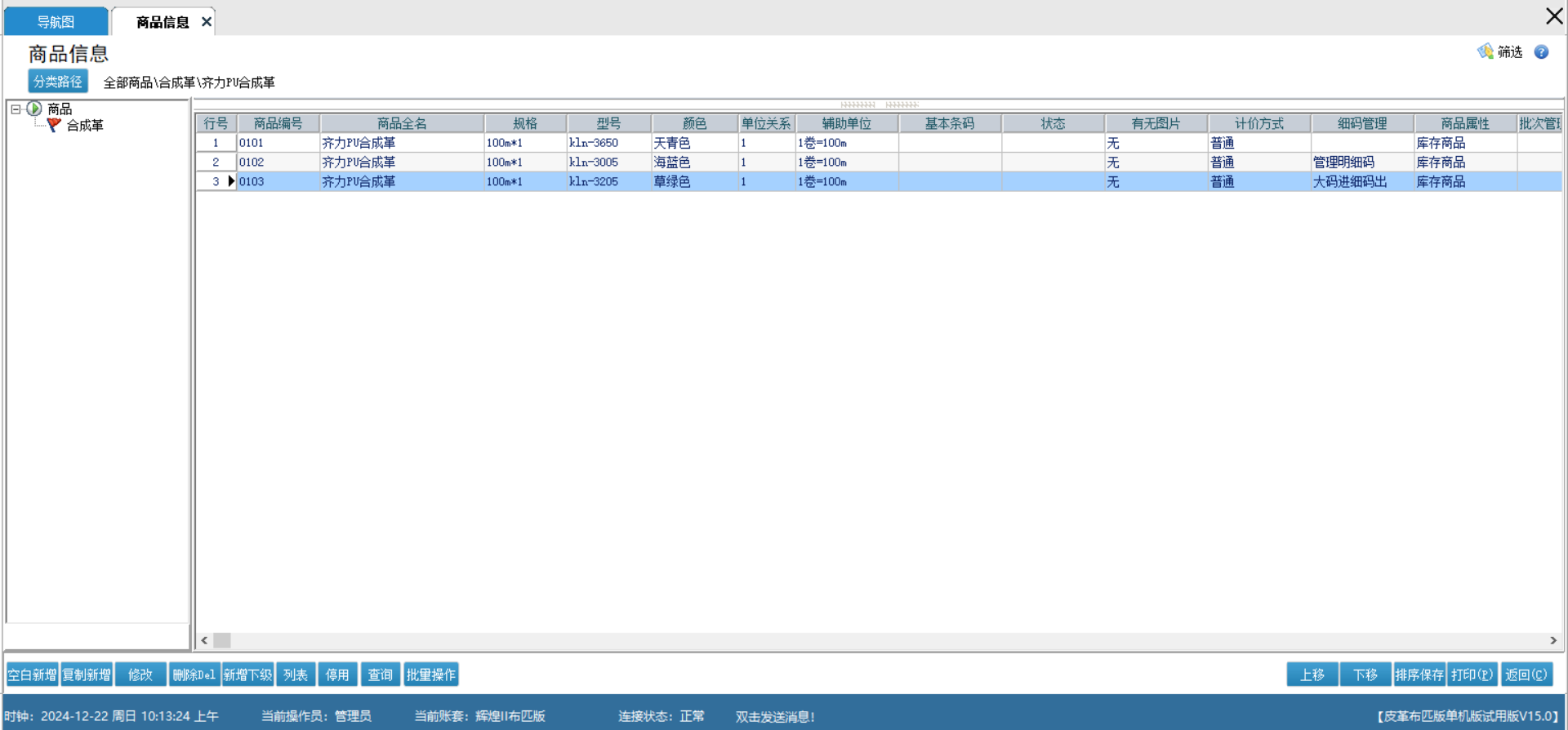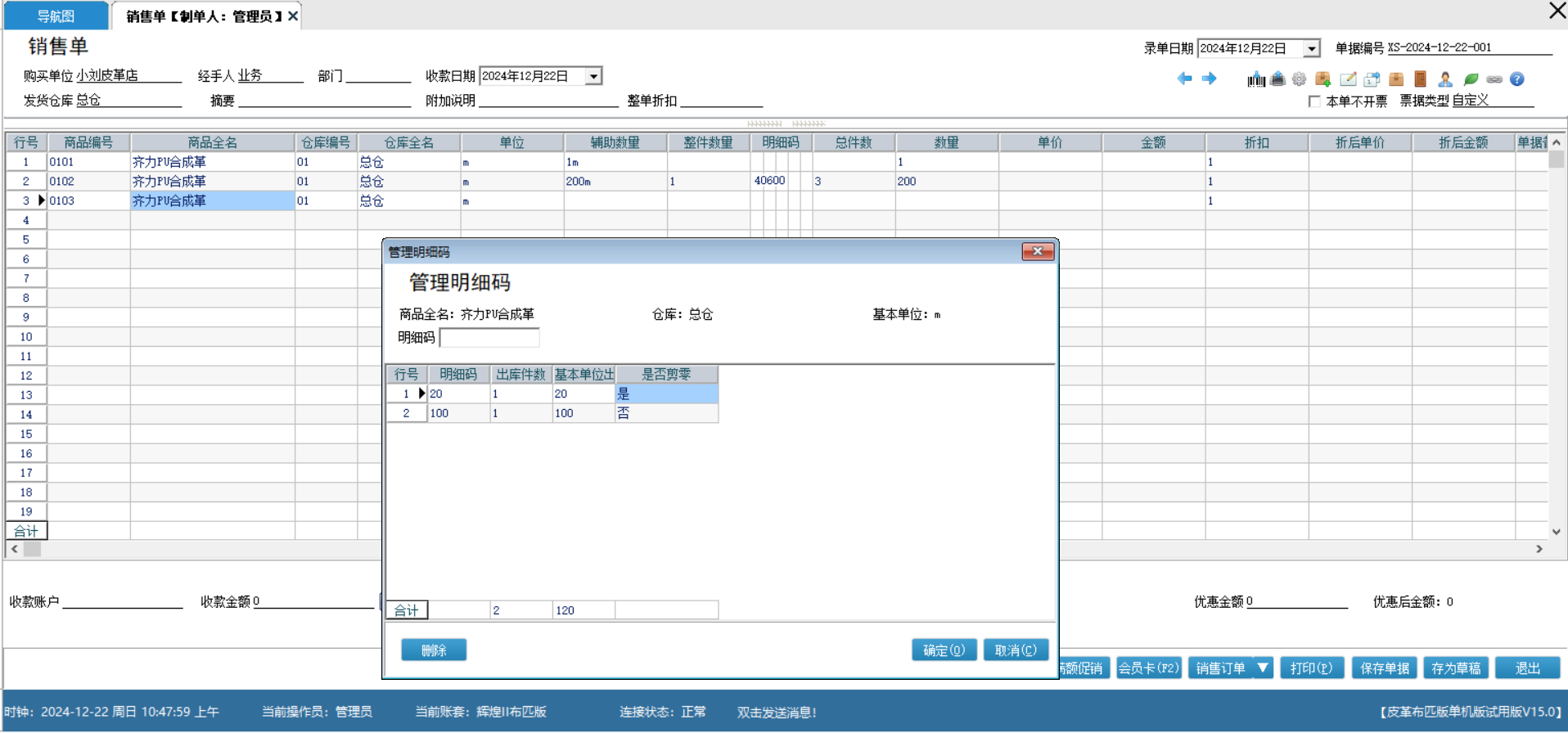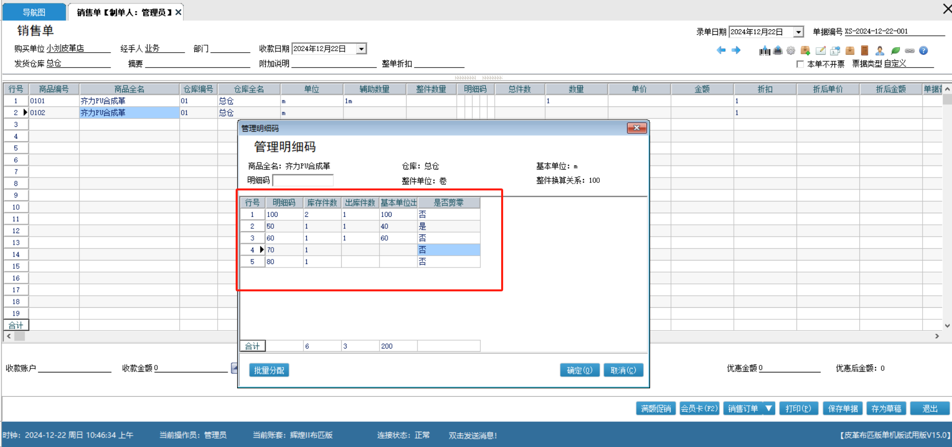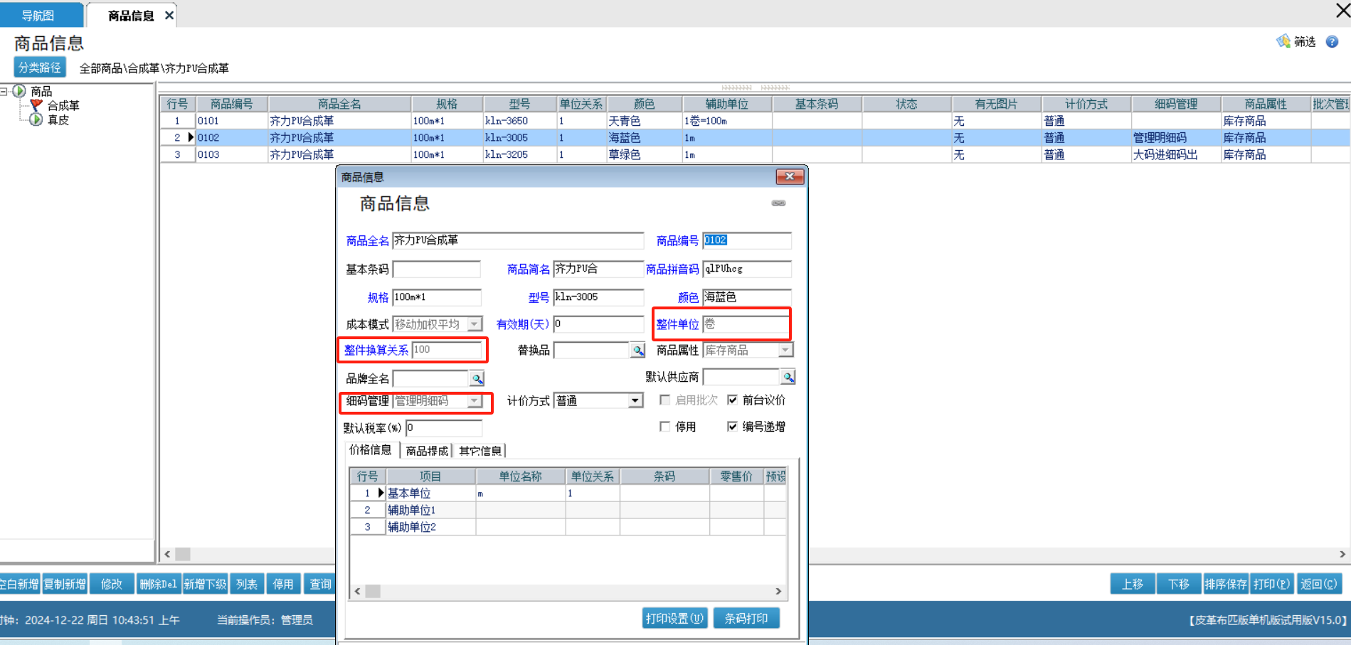 针对皮革布匹专属定制的细码管理,根据不同的细码换算关系来定制不同长度的的产品来应对不同的场景需求